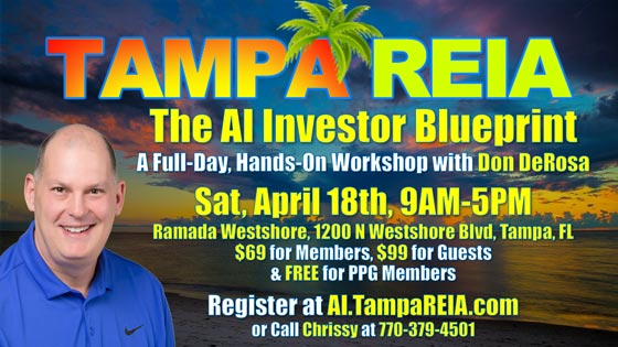 That’s why Tampa REIA is hosting a FULL DAY AI Blueprint Workshop on April 18th in Tampa, FL from 9AM to 5PM.